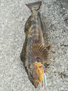 さらに、足元でシャクってジグの動きを確かめていると、20センチくらいのアブラコがジグにアタックし、2匹釣れました。