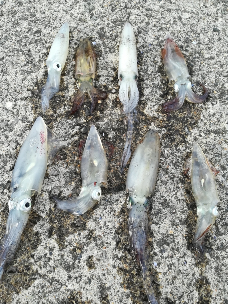 釣果の内訳は、極小スッテ1杯、スッテ2杯、自作スッテ2杯、エギ3杯。